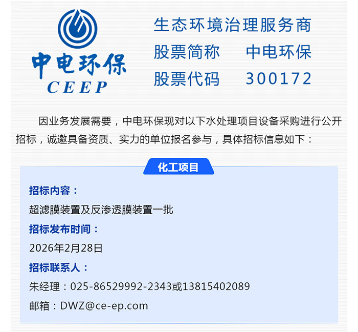 【招標-26-06期】中電環(huán)保誠邀參與:水處理項目設備采購公開招標